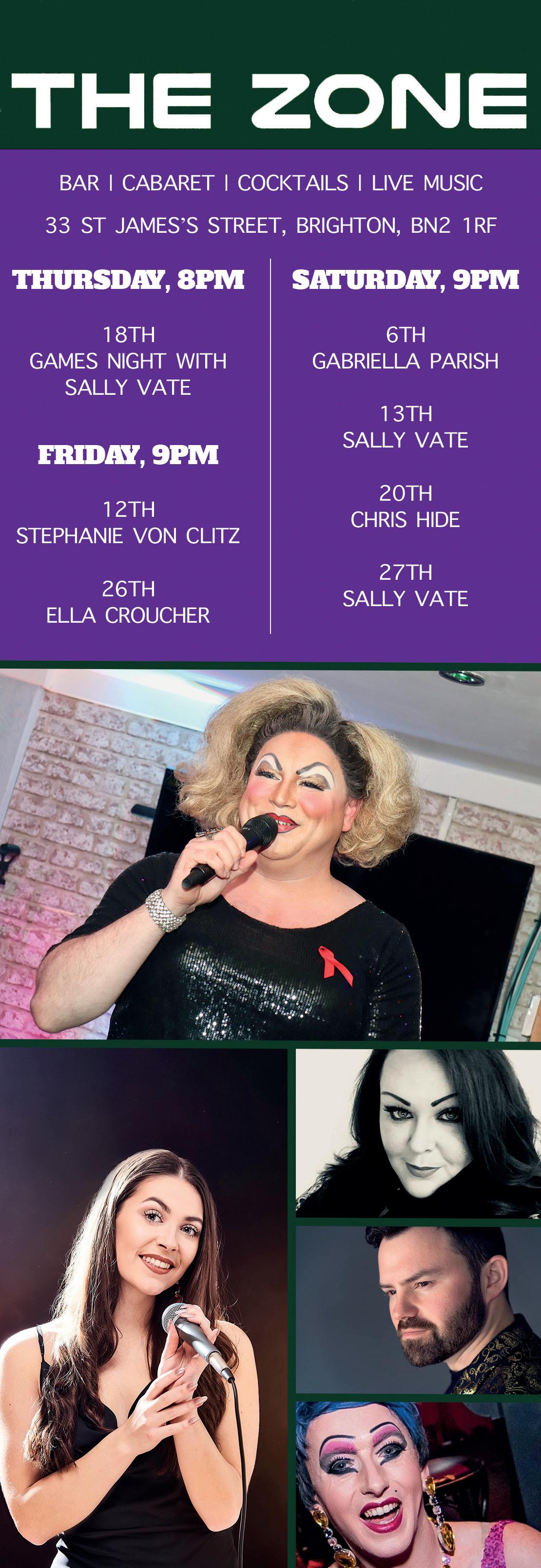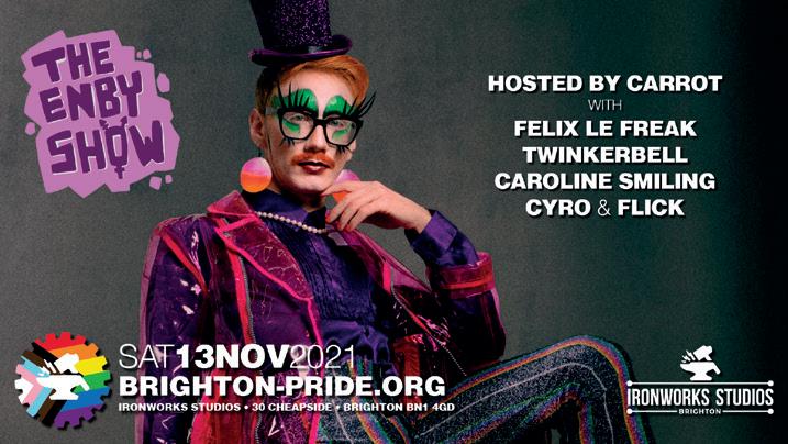 ) November 13: THE ENBY SHOW brings together the best gender-benders and cis-tem offenders that the UK has to offer, in an all-star variety night popping with creme-de-la-thems. You can expect salacious singing, glamorous group performances, dazzling drag and cackle-worthy comedy. D www.brighton-pride. org/13-nov-the-enby-show/