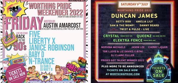 Worthing Pride to return in 2022 with Duncan James, Five, Liberty X, N-Trance and Betty Boo