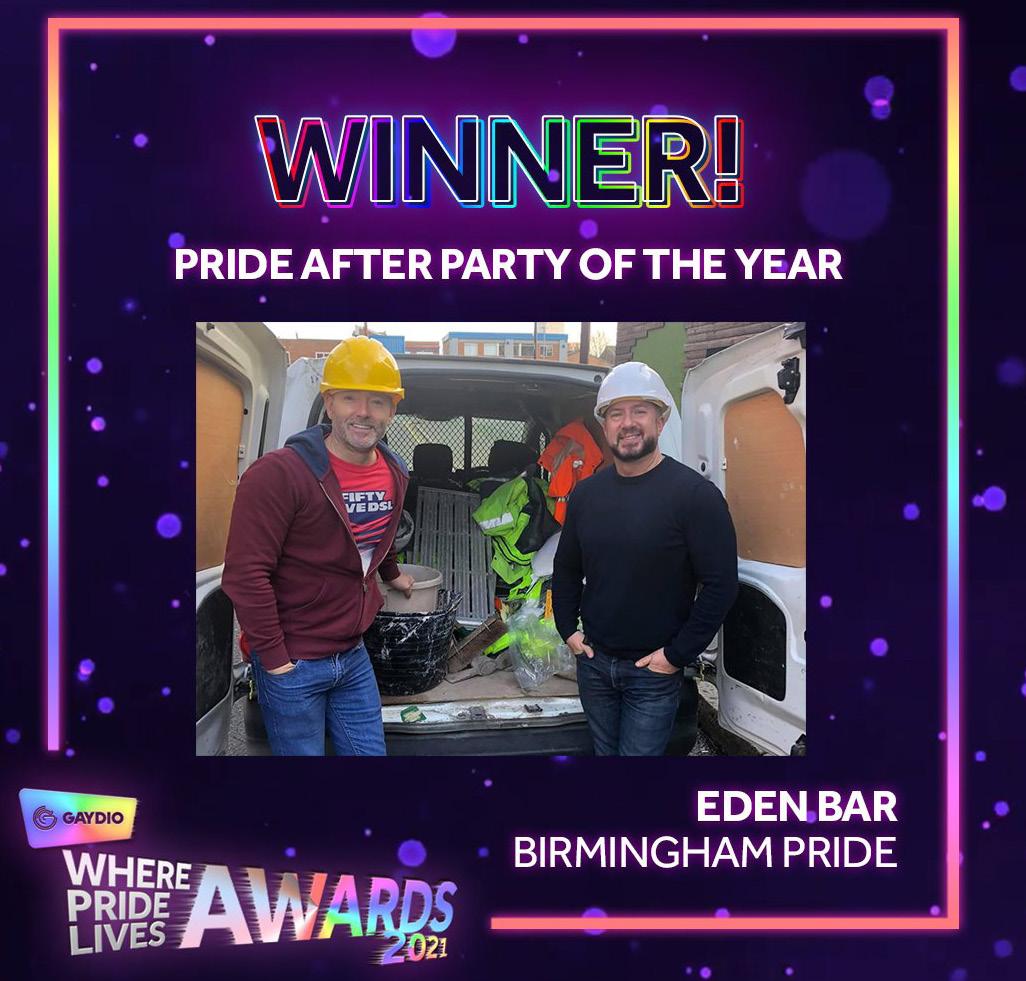 As part of 2021’s Birmingham Pride, it temporarily returned with a pop-up marquee version of Eden Bar which featured a line-up of artists and DJs; an event that won them the award from Gaydio.