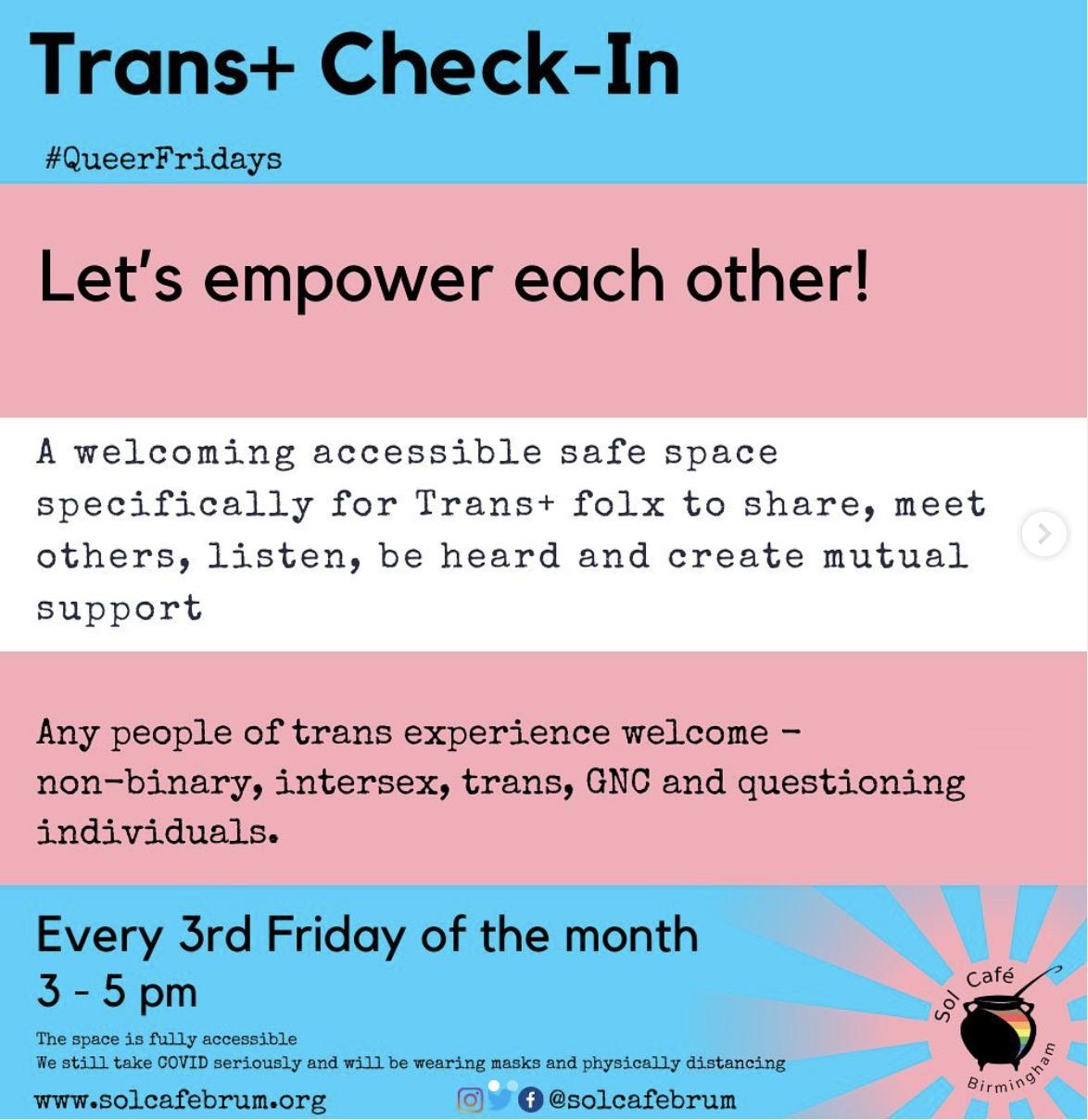 ) Sol Café is a grassroots organisation in Birmingham that provides a pay-as-you-feel, sober safe space for LGBTQ+ people. The project was created due to a need in the community to benefit, in particular, the most marginalised among us.