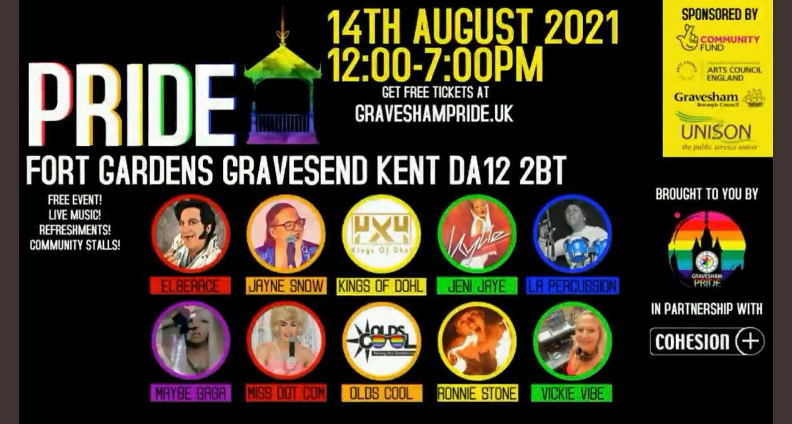 Well this year we are back and this time it’s real world. First up is Gravesham Pride, to be held on August 14 at Fort Gardens The artist line-up includes Jayne Snow, Jeni Jaye, Kings of Dohl, Ronnie Stone, Vickie Vibe and Miss Dot Com. As well as live music, there will be community stalls, refreshments and a heap of goings on. It will be a colourful, fun-filled day for all the family. It starts at midday and runs till 7pm. Best of all, tickets are free at www.graveshampride.uk