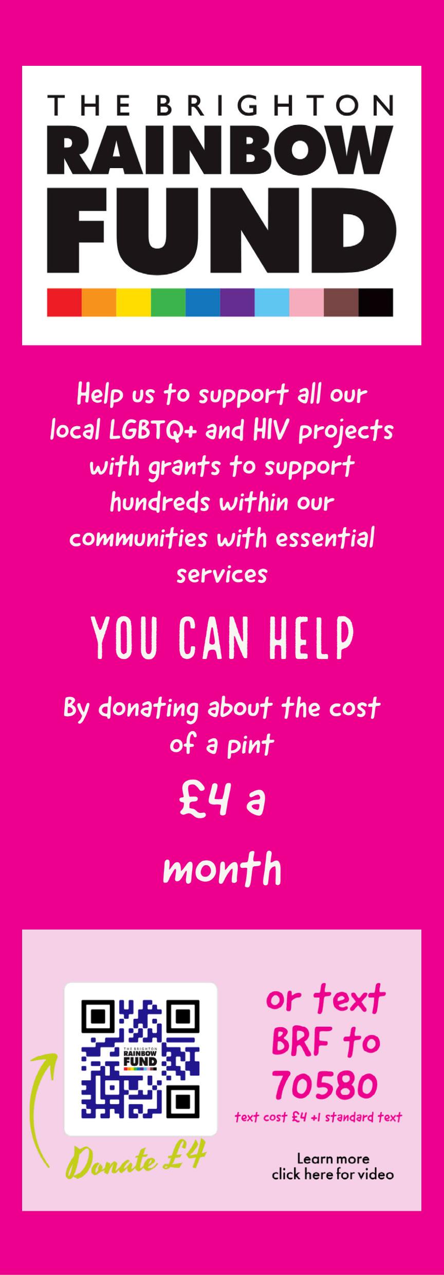 With the ongoing challenges that Covid continues to bring, fundraising for essential local charities and community groups has never been more important. Pride at the Ironworks will allow Pride to continue to ensure that every ticket sold will include a charitable donation to the Brighton Rainbow Fund