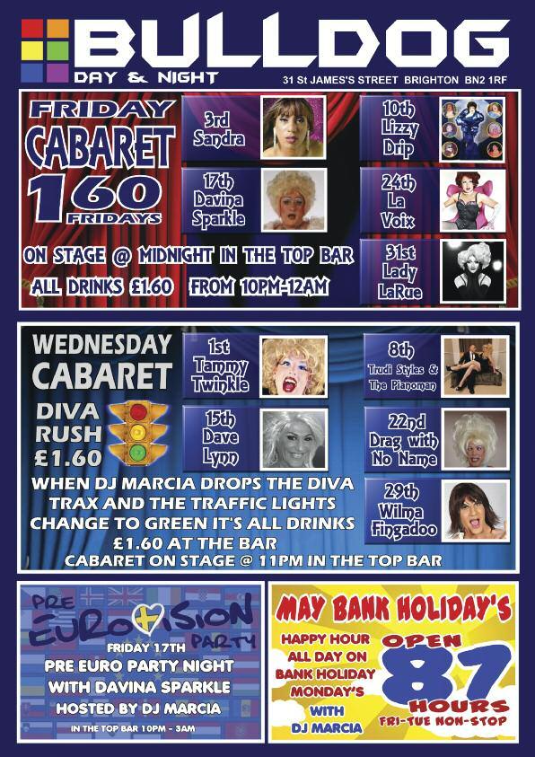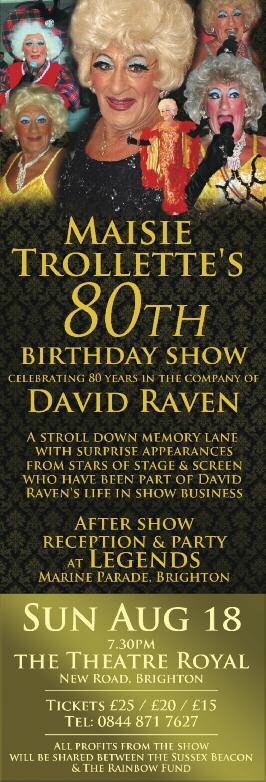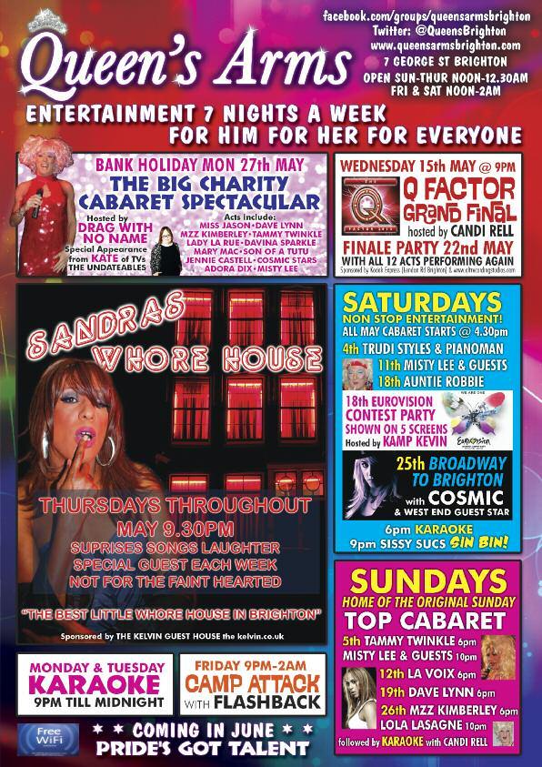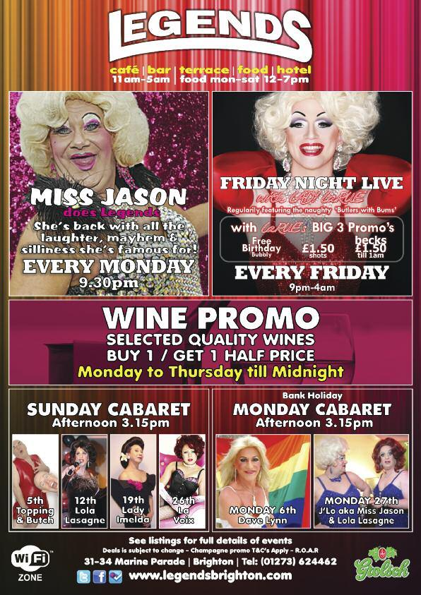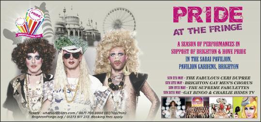 t Brighton Pride are presenting a season of Pride Gala shows in the Ladyboys Sabai Pavilion on Pavilion Gardens as par t of the Brighton Fringe 2013 Ceri Dupree, the Queen of female impersonators, gets the season off to a spectacular star t on Sunday, May 5 with a glittering evening of witty, elegant and high energy enter tainment hosted by the brilliant Lola Lasagne and featuring special guest stars including Dolly R ocket, West End star Wesley Sebastian and the outrageous Myra Dubois, winner of the best 'Drag Act' at the London Cabaret Awards