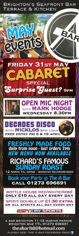 • If you're feeling lucky, Ian's Bingo night is on Monday, May 13 at 6 15pm for early session, 7pm for main event, at the Gala Bingo, Eastern Road, admission £10