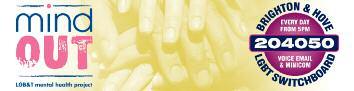 Independent, impar tial info, guidance for LGBT people with mental health problems 24 hr confidential answerphone: Tel: o1273 234839 or info@mindout org uk www.mindout.org.uk