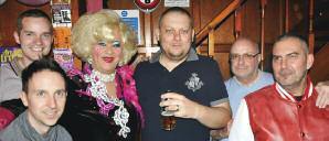 t Local enter tainer and drag queen extraordinaire, Miss Jason, was on hand to judge the Great Gay Cake Bake- Off at the Marine Tavern in Broad Street last month Regulars at the Marine Tavern paid a fee to enter their cakes into the competition and afterwards slices were sold off to customers Eleven cakes were entered and the winner was Paul Samuels who baked beautiful pink fairy cakes in the shape of ladies stiletto shoes