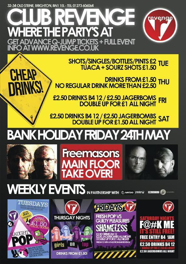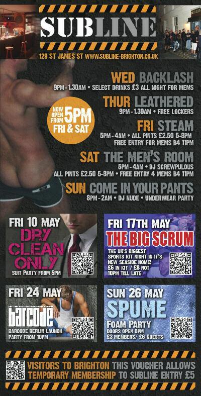 Gay men’s sexual health clinic Wed 5-6 30pm Opposite Royal Sussex County Hospital entrance Abbey Rd Tel: 01273 664721