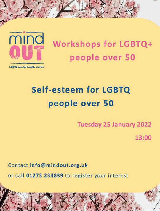 ) As part of MindOut’s Age Matters project, the LGBTQ+ mental health charity is planning a series of workshops for older LGBTQ+ people, which will be held in-person at Community Base, 113 Queens Road, Brighton BN1 3XG