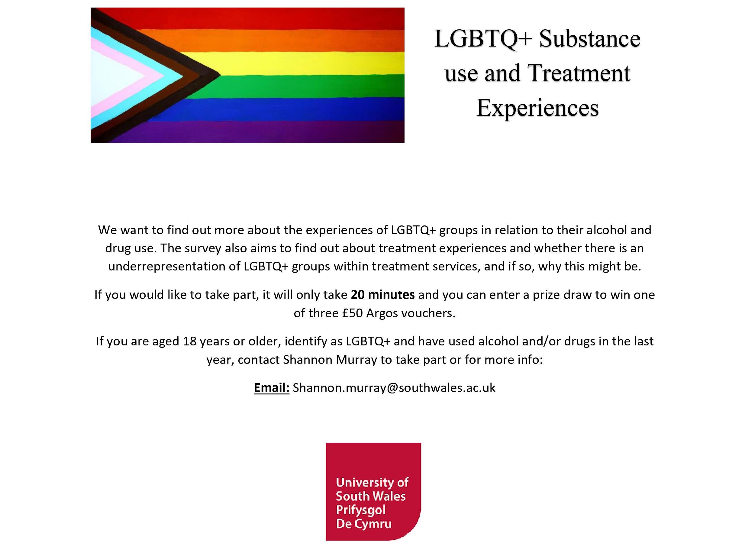 The research study will explore drug and alcohol use and experiences of treatment in the UK's LGBTQ+ population