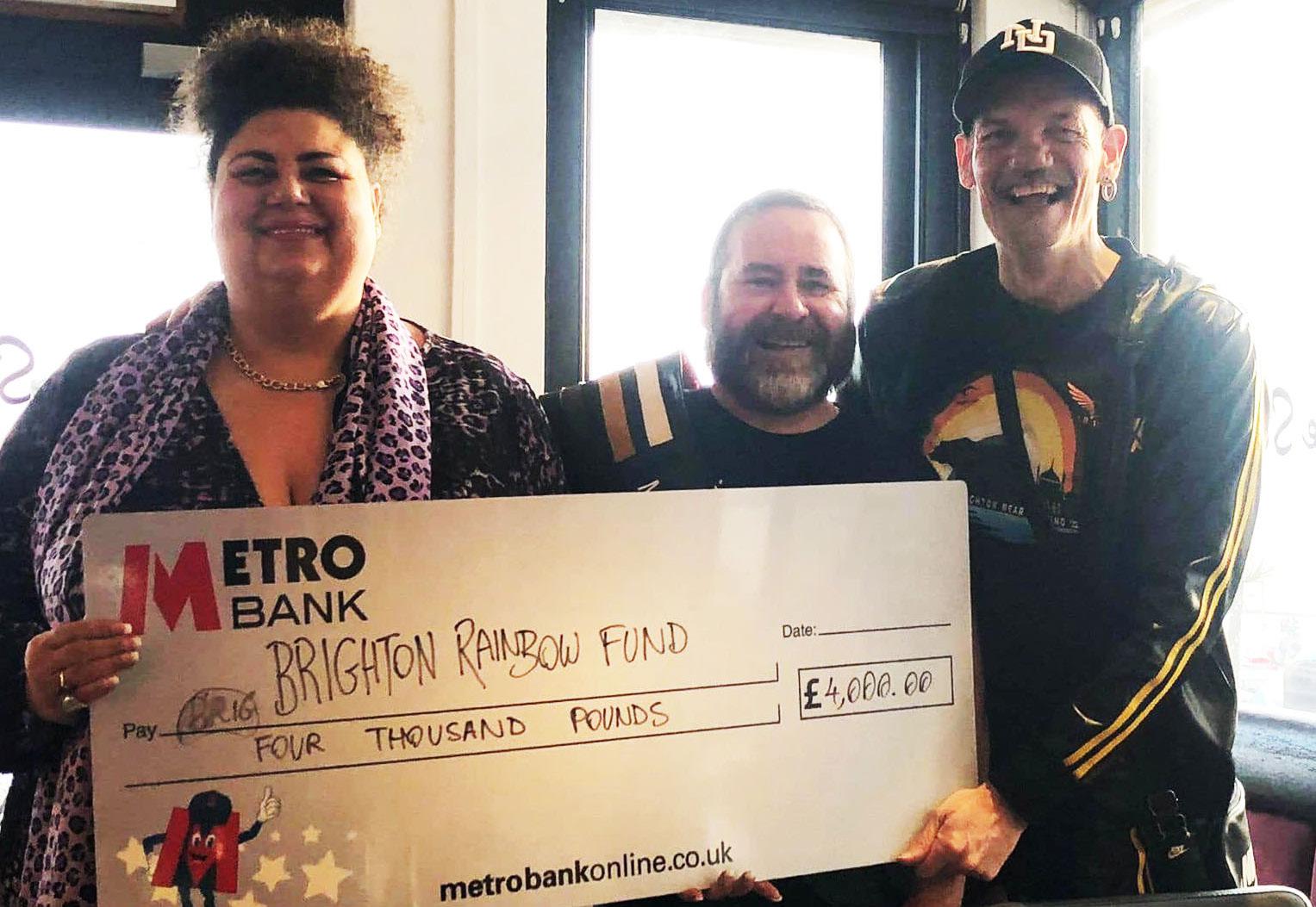 The cheque, which represented the proceeds from the 2021 Bear Weekend, was accepted by Maria Baker, a panel member and treasurer of the Brighton Rainbow Fund.