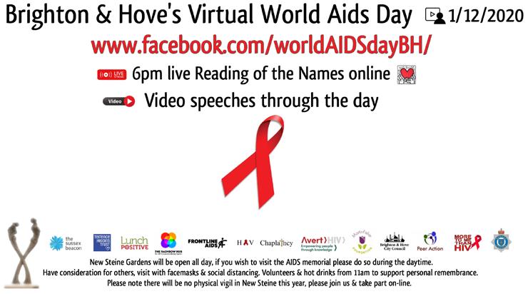 ) The city’s annual partnership main event for World Aids Day (WAD), the vigil and reading of the names, will, for obvious reasons, be mainly online this year, although New Steine Gardens will be open to visitors.