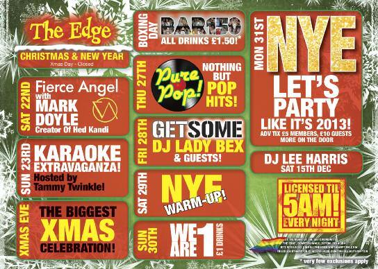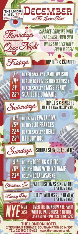 ■ XMAS: Fri (21)is MaisieTrollette’sXMASCABARETSpecial at 10pm,pre-club shotsfrom£2. ■ Mon (24)is XMASEVEPARTY withfreeentry. ■ Tue (25),open 8pm