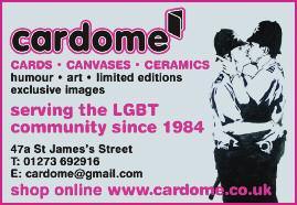 Cardome haveveryspecial Christmascards, handmadelocally,usinggenuinecrystals,glitters, sequinsandbowsmountedonspecialboards.Atreat thisChristmasat £4.30 ea,probablythelowestprice inthecity.(47aStJames’St,Brighton, 01273692916,www.cardome.co.uk)