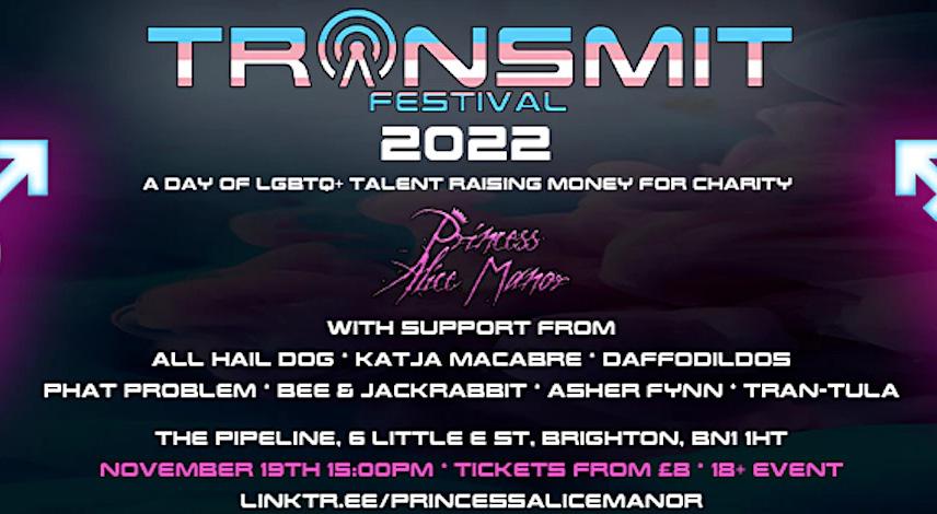 Trans-Mit Festival, a day of LGBTQ+ talent raising funds for charity, is to take place at The Pipeline, Brighton on Saturday, November 19 from 3.30pm.