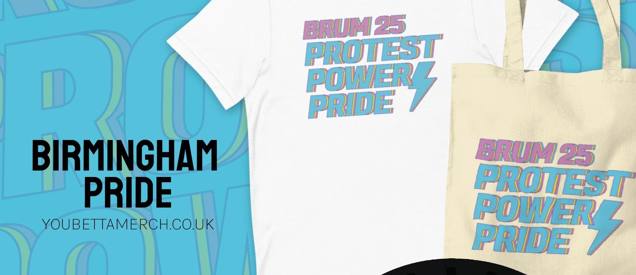 The products featured the words Brum 25, Protest Power Pride in celebration of 25 years of Pride, protest and power in the city.