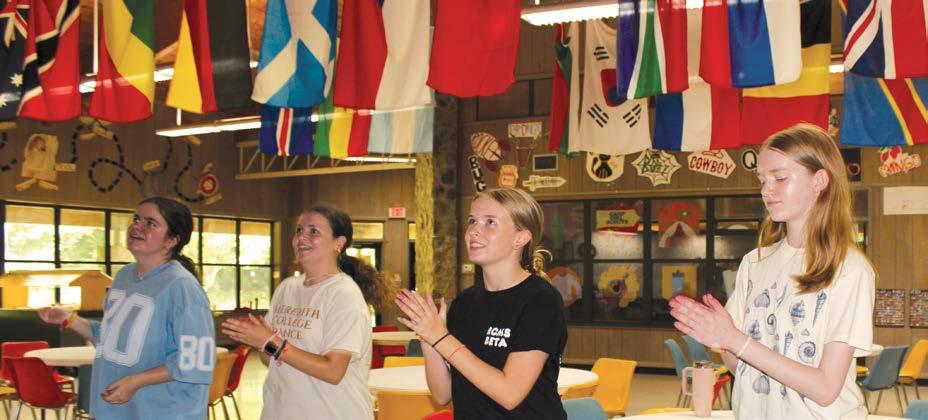 Meals: All meals and snacks are provided at camp. Meals are communal, familystyle experiences supervised by staff. We strive to make all meals tasty, balanced and camper-friendly. We employ a kitchen team of trained chefs and helpers who prepare most food from scratch. Accommodations are made for dietary restrictions (vegetarian, gluten free, dairy free, etc.). We do not encourage “try it bites” or the “clean plate club,” but rather allow campers to eat what and how much they like. Alternatives like Sunbutter and jelly sandwiches, cereal and salad bar are always available in addition to the primary meal. We are a nut, shellfish and sesame aware facility and are happy to accommodate most food allergies. We are pleased to welcome Wolfoods as our new camp food service provider for this summer. You can learn more about Wolfoods at bit.ly/3ZaVjaB.