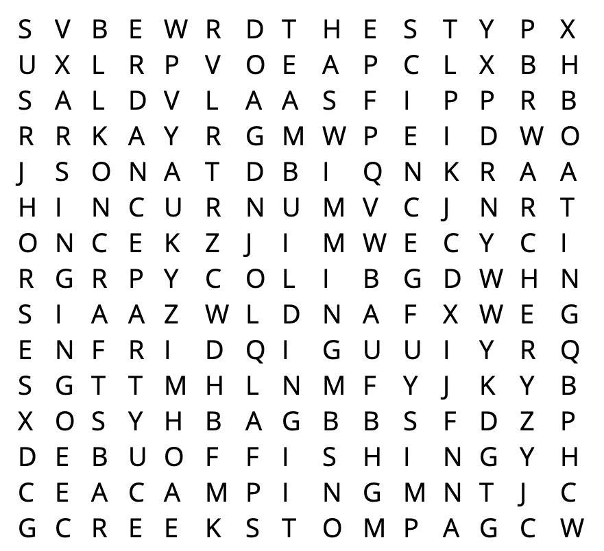 Search for the hidden words in the puzzle. Then, come experience these activities in person at camp!