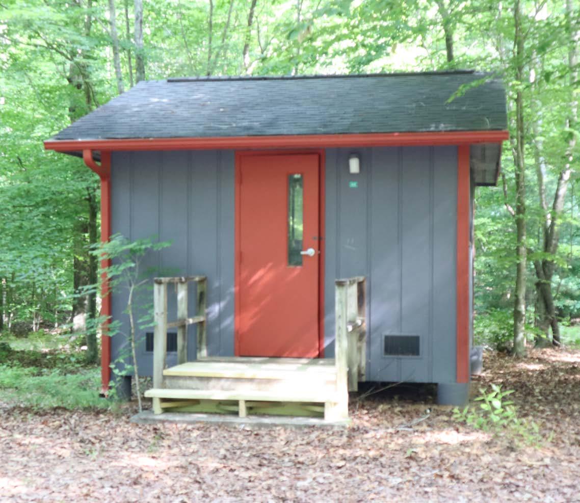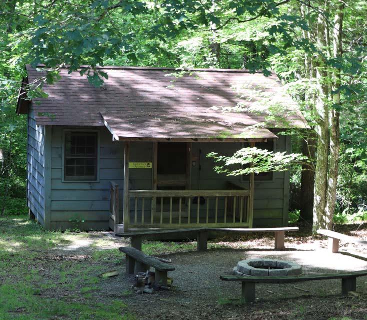 This site consists of eight small, insulated cabins, each with six cots, ceiling fan, small heater and electricity. Each cabin’s door is painted a different color (red, orange, yellow, green, indigo, violet and teal). The shelter contains a fireplace, picnic tables and kitchen (stove, refrigerator, microwave sink). The shelter, bathroom and one cabin are handicapped accessible.