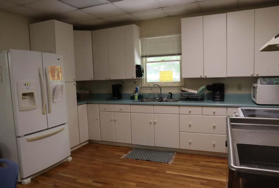 The upstairs of the dining hall includes an area to seat up to 180 people at tables and a large, fully equipped, institutional kitchen. The winterized, handicapped accessible dining hall can be used for games, dancing, instruction or other group gatherings. Serving options include both family style and cafeteria style. Below the dining hall is a large concrete-floored, open sided room with picnic tables and an air-conditioned art/ craft room for 30 (storm shelter). There is a fireplace on the upper and lower levels. Bathrooms are located downstairs. The camp’s climbing wall is attached to an outside wall of the building.