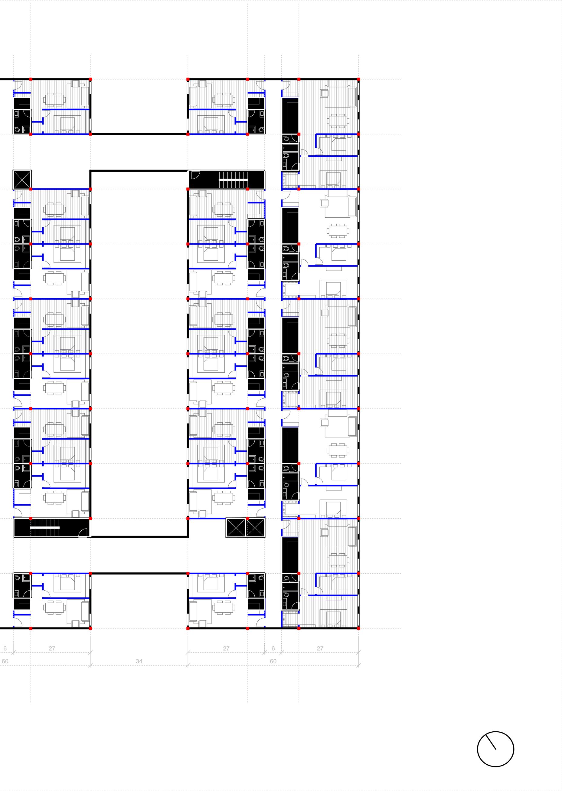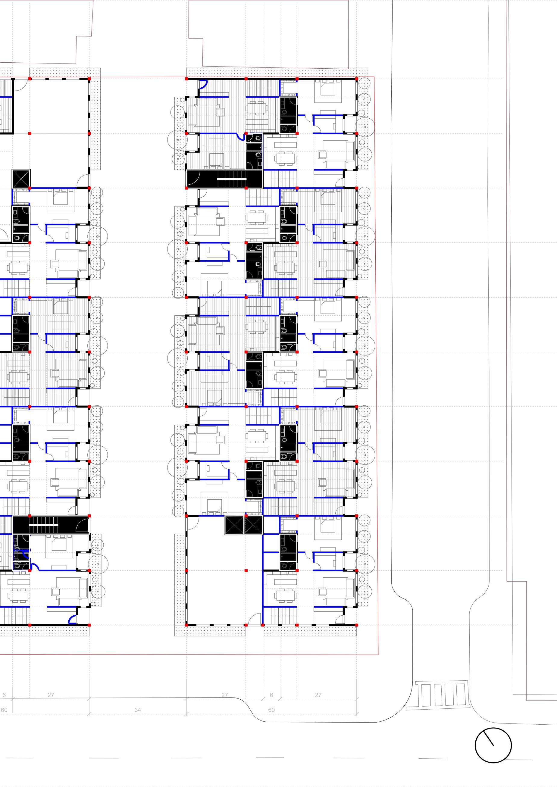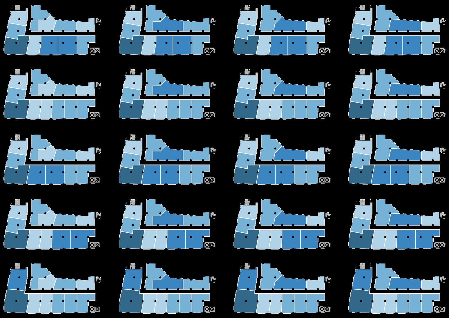 Turning to layout, we inherit a floor plan with three separated cores pushed into different corners of the structure and a non-orthogonal column grid — conditions that compromise both efficiency and usability. Our approach was to generate a series of plan variations, testing how each manages circulation, structure, and unit performance.