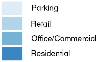 Another project, the Arcadia Town Center, is a good example for the other end of the spectrum — an entirely generic development project.15,16 Arcadia Town Center is also a mid-rise multifamily building, with one story of retail. It has local investments and local developers (New World International L.L.C., PSOMAS), and is located at a central location of