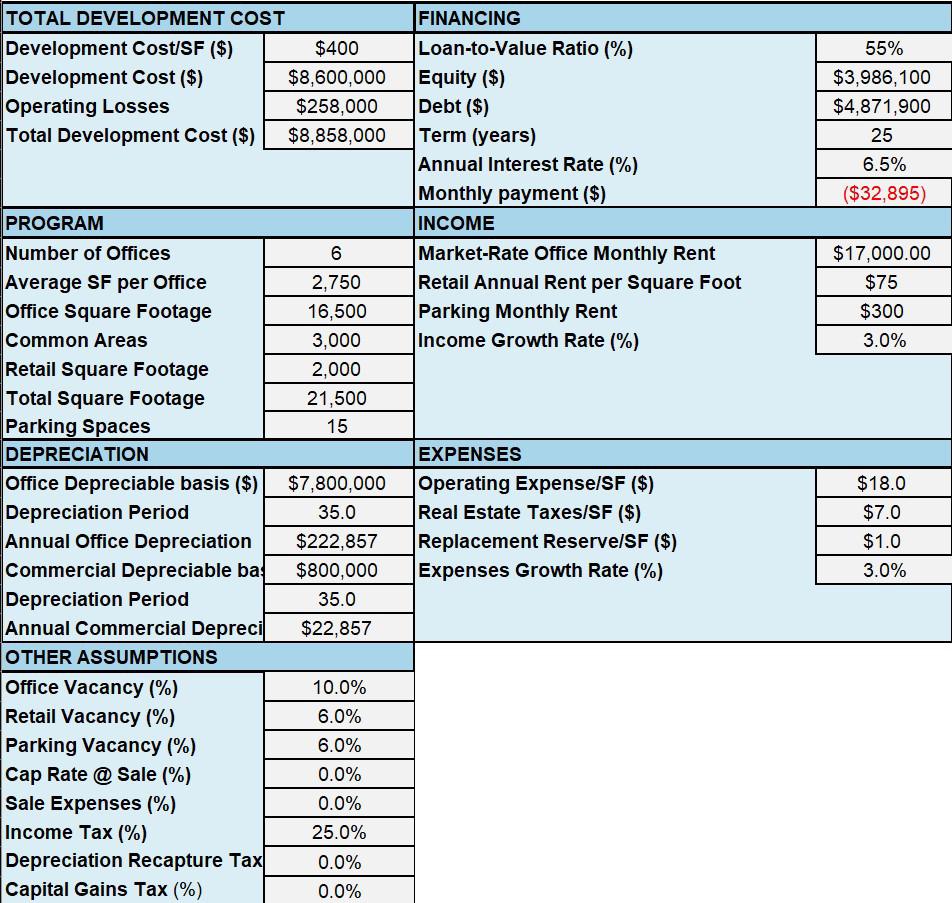 For the final project of the course, 2-3 students collaborated on a project of the student group’s choosing. The projects fell into two overarching categories - a Development Proposal or a Research Report. These projects focused on an issue at the intersection of real estate development finance and design.