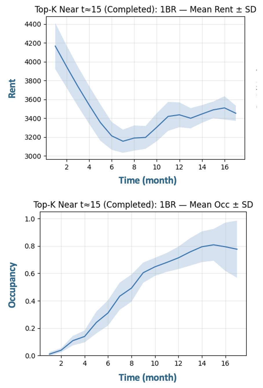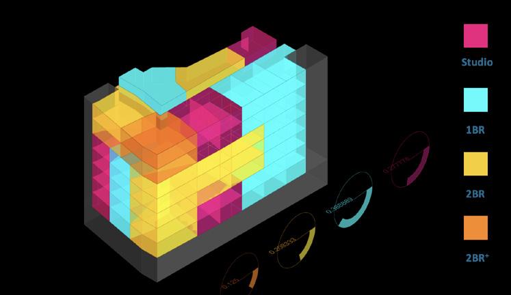 To navigate this challenge, we built a machine-learning–based agent model that simulates market response to our design proposals, providing insights on stabilized rent and occupancy with the timeline. This model establishes a baseline economic feedback loop that remains active throughout the design process.