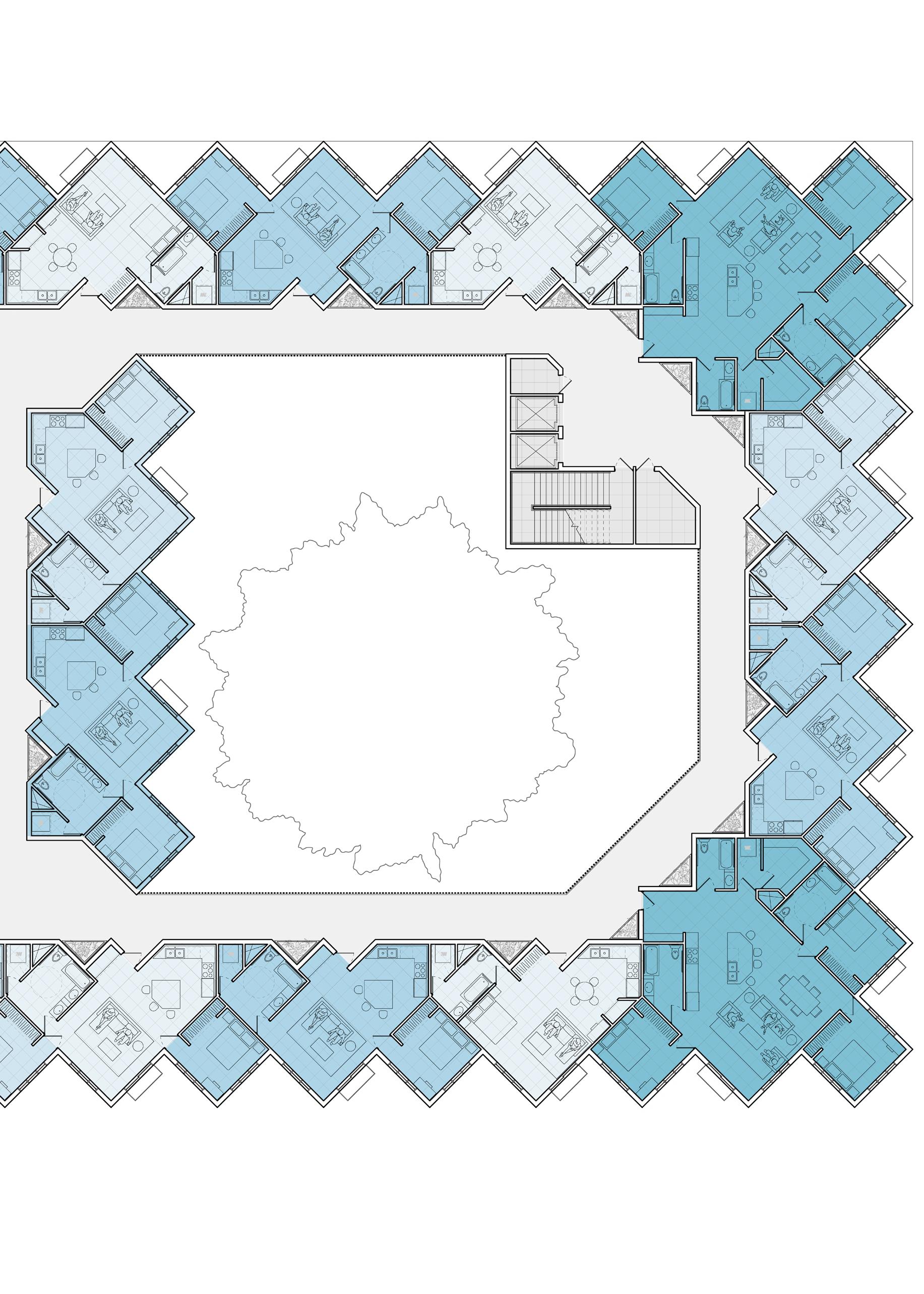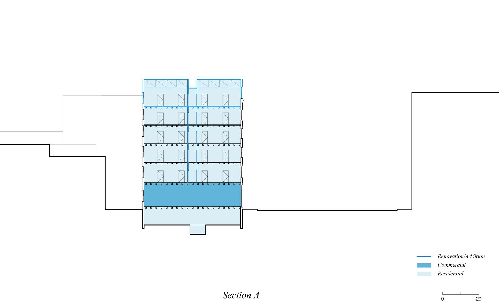 We therefore maintain the original building envelope, which reduces our spatial freedom and demands a highly strategic approach to floor area allocation and sensitivity to market.