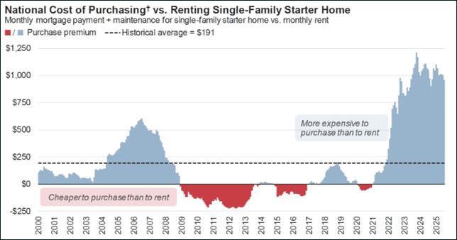 Cities across the United States are stuck with a basic mismatch: there is far more office space than today’s economy needs, and nowhere near enough housing for the people who want to live in these urban cores. Office demand has weakened as hybrid and remote work have taken hold, leaving large chunks of the existing office stock underutilized or obsolete. At the same time renters face a severe shortage of reasonably priced apartments. This imbalance is especially visible in dense neighborhoods like downtown Boston and Chinatown, where aging office buildings sit half empty while renters compete fiercely for limited units. At the same time, the financial gap between owning and renting has rarely been wider, which tilts households toward renting and increases the urgency of new multifamily supply. Nationally, the typical monthly payment needed to purchase a starter single-family home now exceeds the cost of renting by roughly $962. As long as high prices and limited for-sale inventory keep homeownership out of reach for many households, more people will remain renters for longer, and the pressure on the rental housing market will intensify.