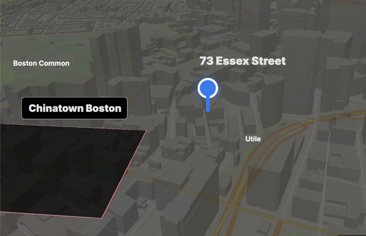 Zooming into our site, located at 73 Essex Street in Boston’s Chinatown, the parcel sits at a pivotal edge condition — a few blocks aways from Boston Common. Its position places it just outside the densest core of Chinatown, yet within clear reach of its commercial and cultural energy.