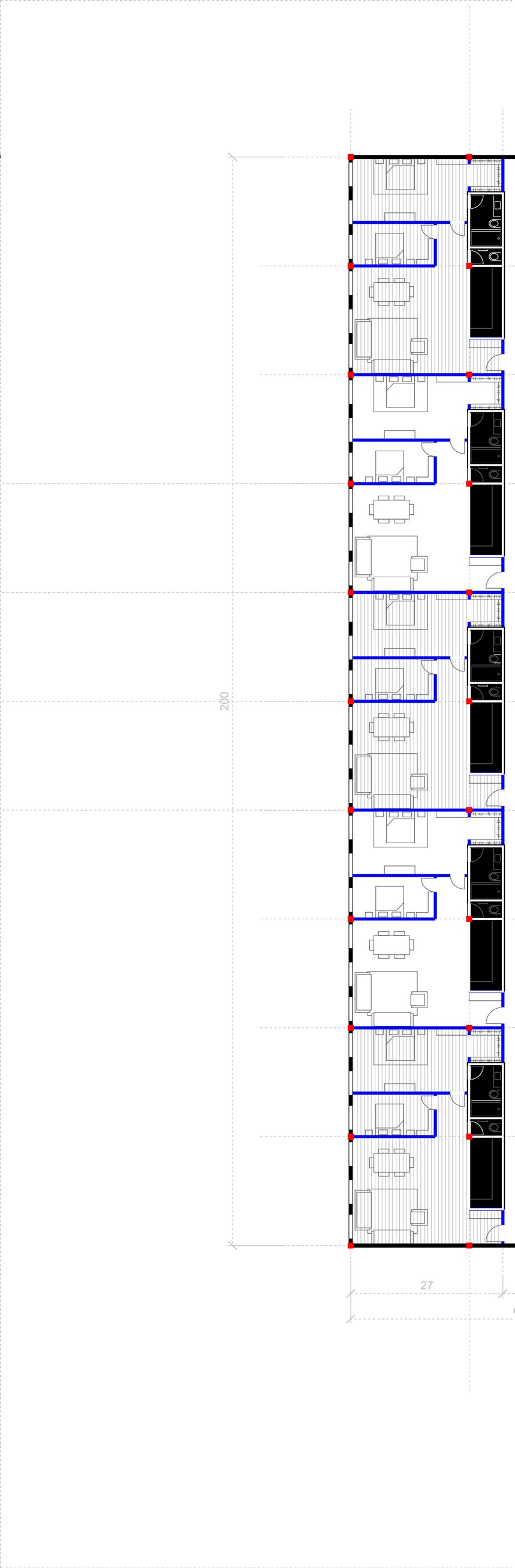 Yet if we examine the mass and form of the building, beneath the advertisement strategies, nothing concrete is really conforming to an Asian American lifestyle, which might involve multigenerational living, heavy-oil-cooking, or Asian American activities for amenity areas. The mass of the whole project is a typical double loaded corridor building. The floor plan is entirely typical for speculative real estate.