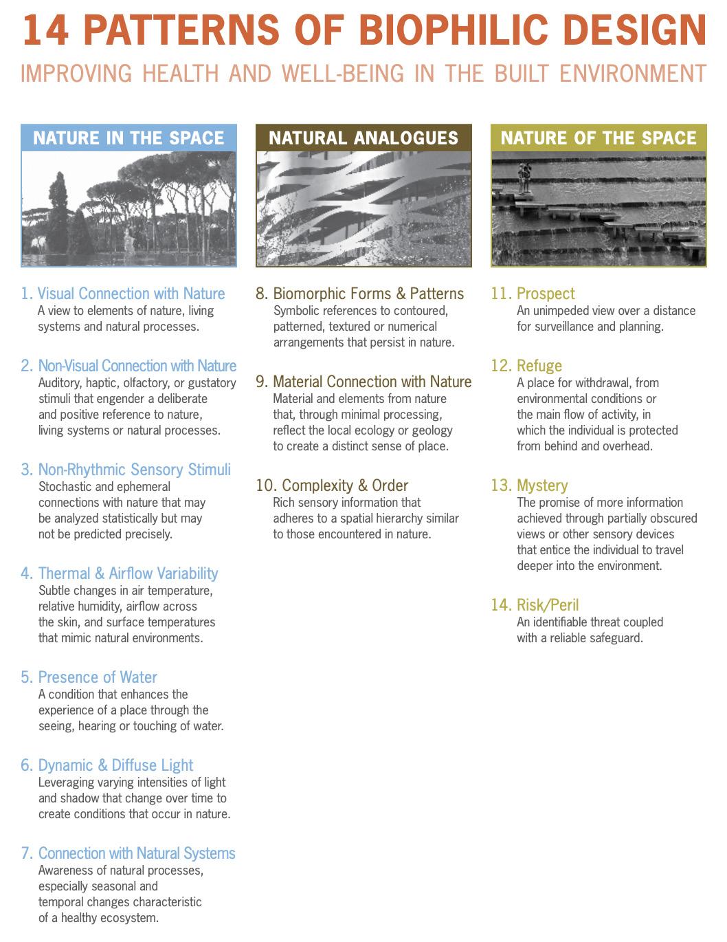 39 Terrapin Bright Green. (2014). 14 patterns of biophilic design: Improving health and well-being in the built environment. Terrapin Bright Green, LLC.