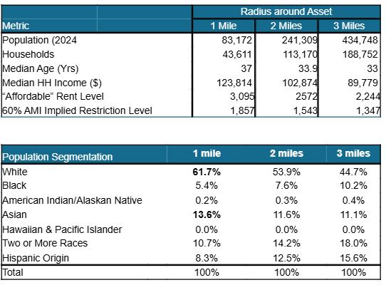 The surrounding neighborhoods at 73 Essex are dense, relatively young, and high income, with median household incomes into the six figures within a one-mile radius to the site and strong renter affordability at levels consistent with upper-middle-income urban households. The existing housing stock in this radius skews toward smaller formats, with a large share of one-bedroom units, and the population is predominantly White and Asian, reflecting the combined influence of downtown employment, nearby universities, and Chinatown’s long-standing cultural base. In this context, the project is likely to target renters-by-choice who value proximity to the CBD and transit (young professionals, graduate students, and dual-income couples without children) along with some moderate-income households qualifying for units restricted around 60 percent of area median income.