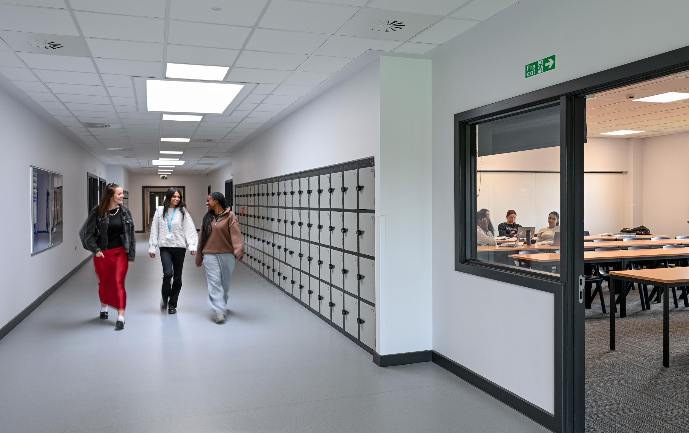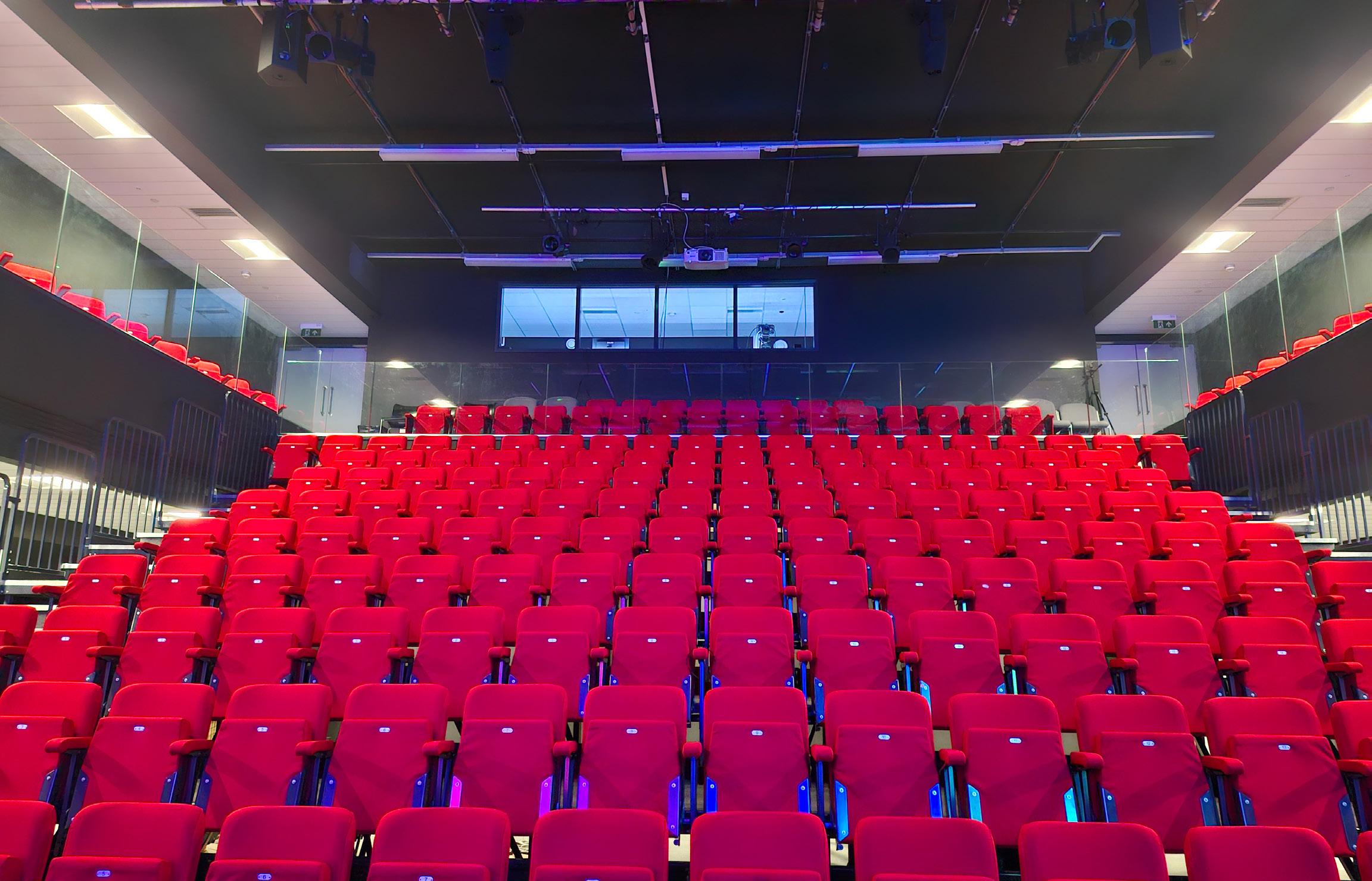 East Durham College enlisted our help to evaluate and present architectural, mechanical, electrical and acoustic enhancements for the Peterlee Campus. The project involved modifications and refurbishments including the installation of an acoustically treated modular recording room system, and several audio performance, practice, and recording spaces with new state-of-the-art AV connectivity. The theatre space was improved with the installation of a glass theatre balustrade system, theatre lights and sound system along with refurbished wall and floor finishes.