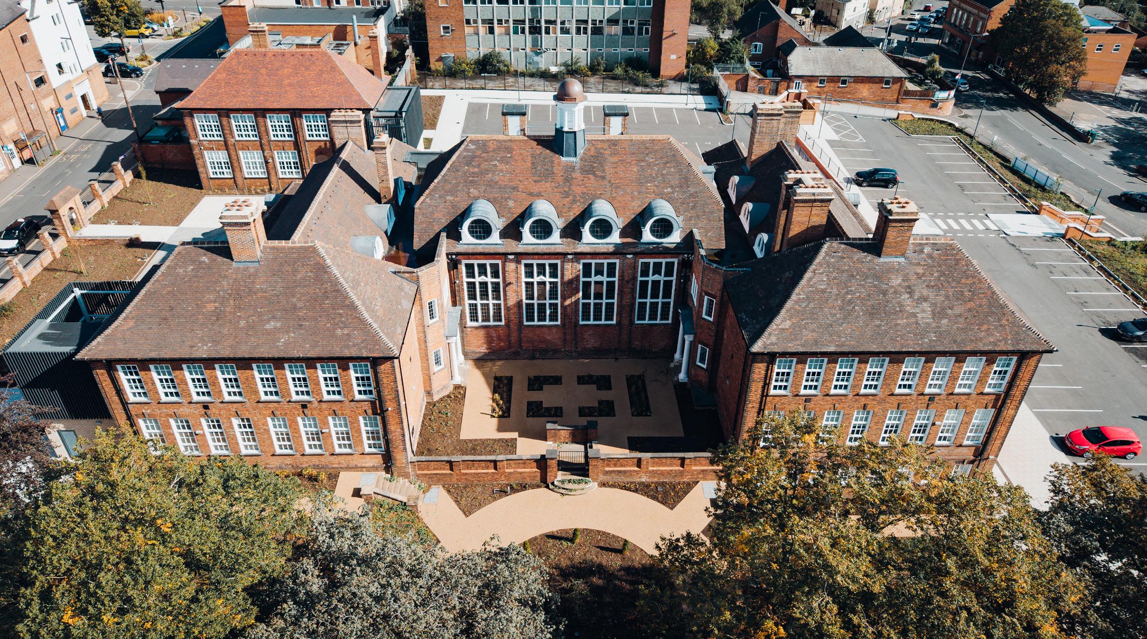 The restoration of a Grade II listed former Grammar School in Heanor Town Centre has recently completed. We were appointed as Architect, Lead Consultant and Principal Designer on the regeneration of this much-loved building, which now provides mixed-use business and community facilities. A major aspect of the project brief was to decarbonise and improve sustainability of the existing building, which has been achieved through the introduction of an all-electric heat pump based strategy and improved building fabric.