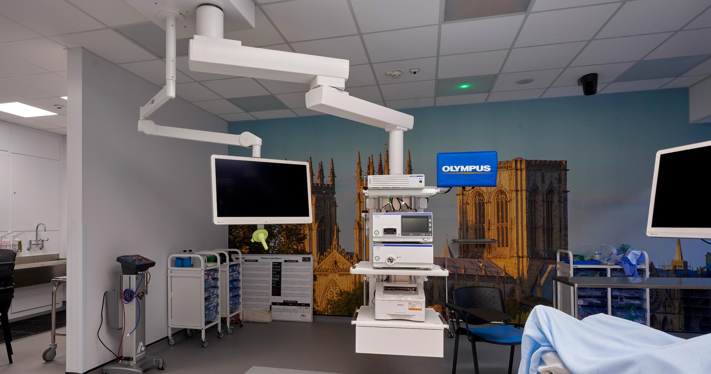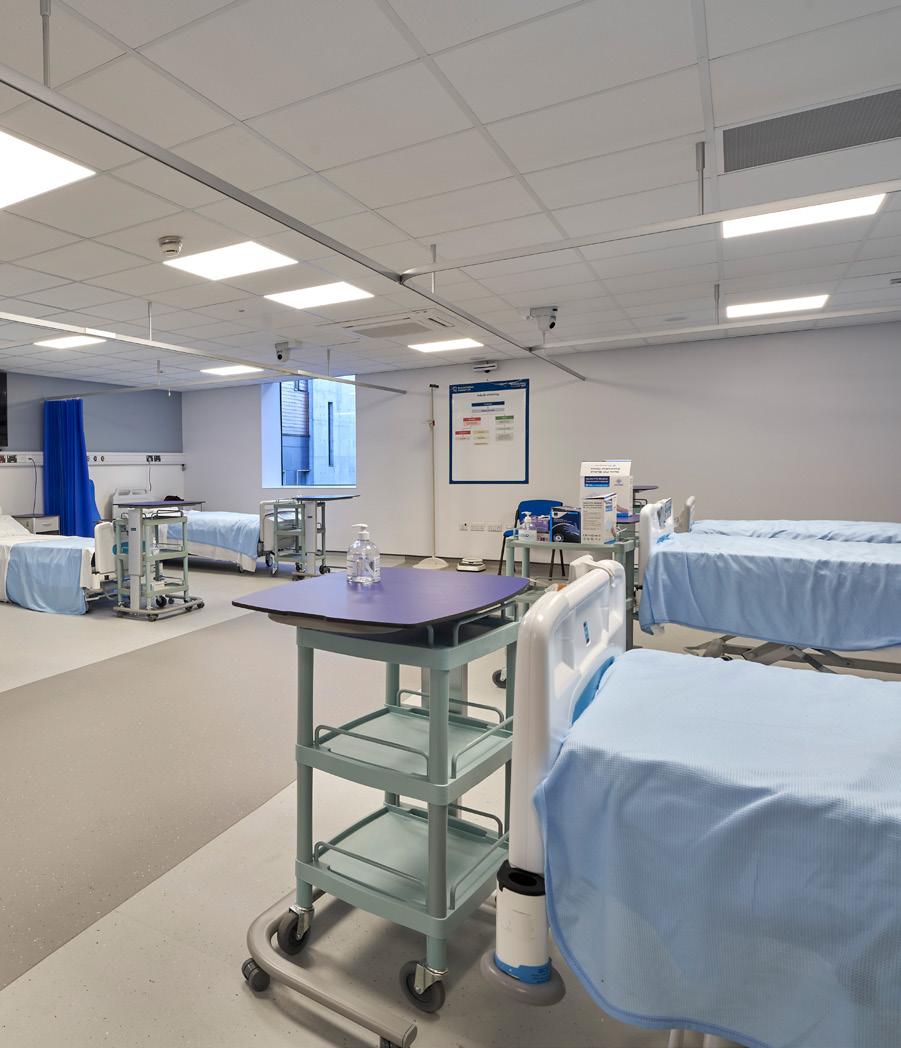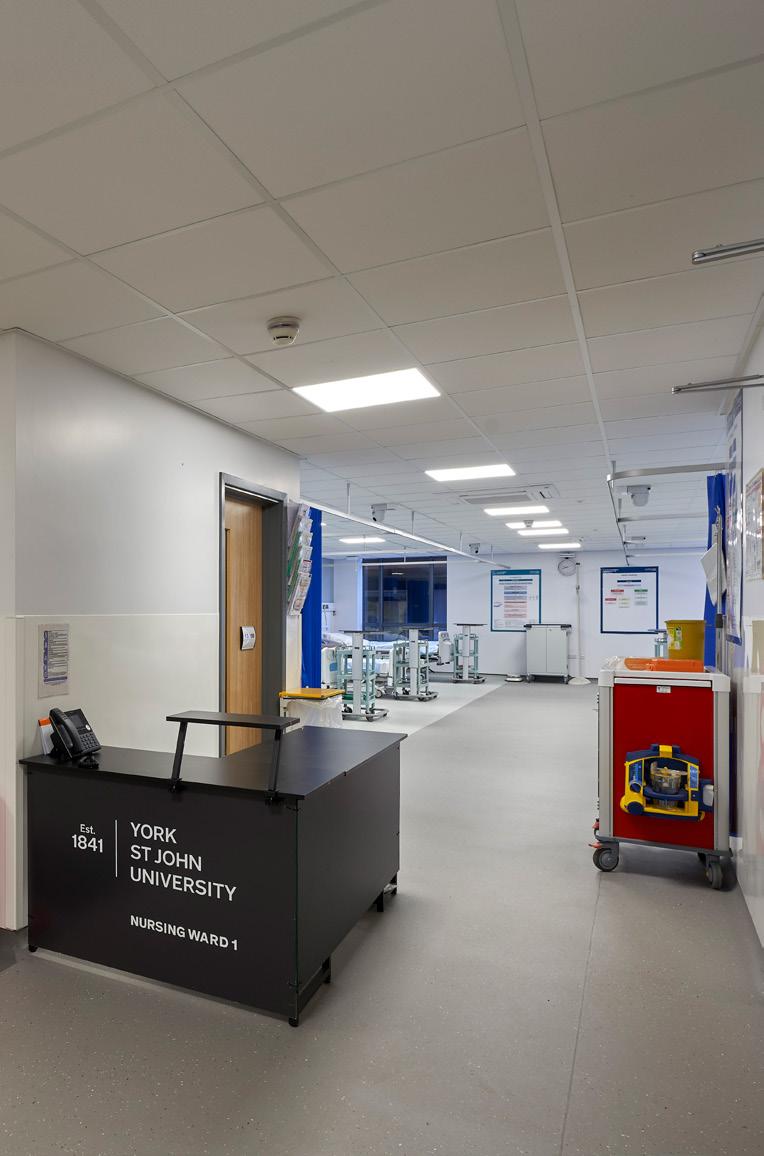 Leading the spatial co-ordination and technical design as Lead Consultant, Architect and Principal Designer (BR) at York St John University, we have reimagined the existing sports hall, introducing a sophisticated two-storey steel frame structure that creates a brand-new upper level which dramatically increases the facility’s usable space. This innovative reconfiguration has enabled the introduction of a host of advanced clinical training spaces, including a mock operating theatre with canopy and pendants, a specialist birthing suite, and facilities tailored for radiography, midwifery, and operating department practitioner training.