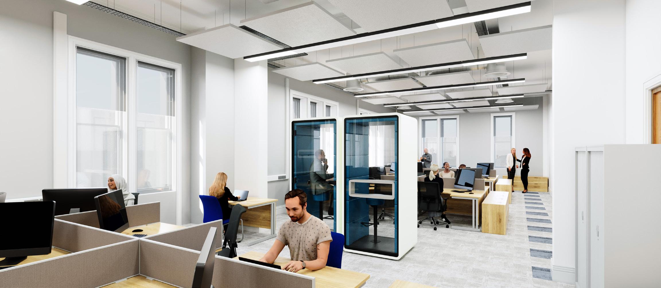 Working closely with fit-out contractor, Overbury, we provided Architectural services on the extensive refurbishment of King’s Gate at Newcastle University. The ‘one-stop-shop’ for student services has been redesigned to provide a more welcoming and flexible environment, with the incorporation of additional event space to accommodate more studentfocused activities.