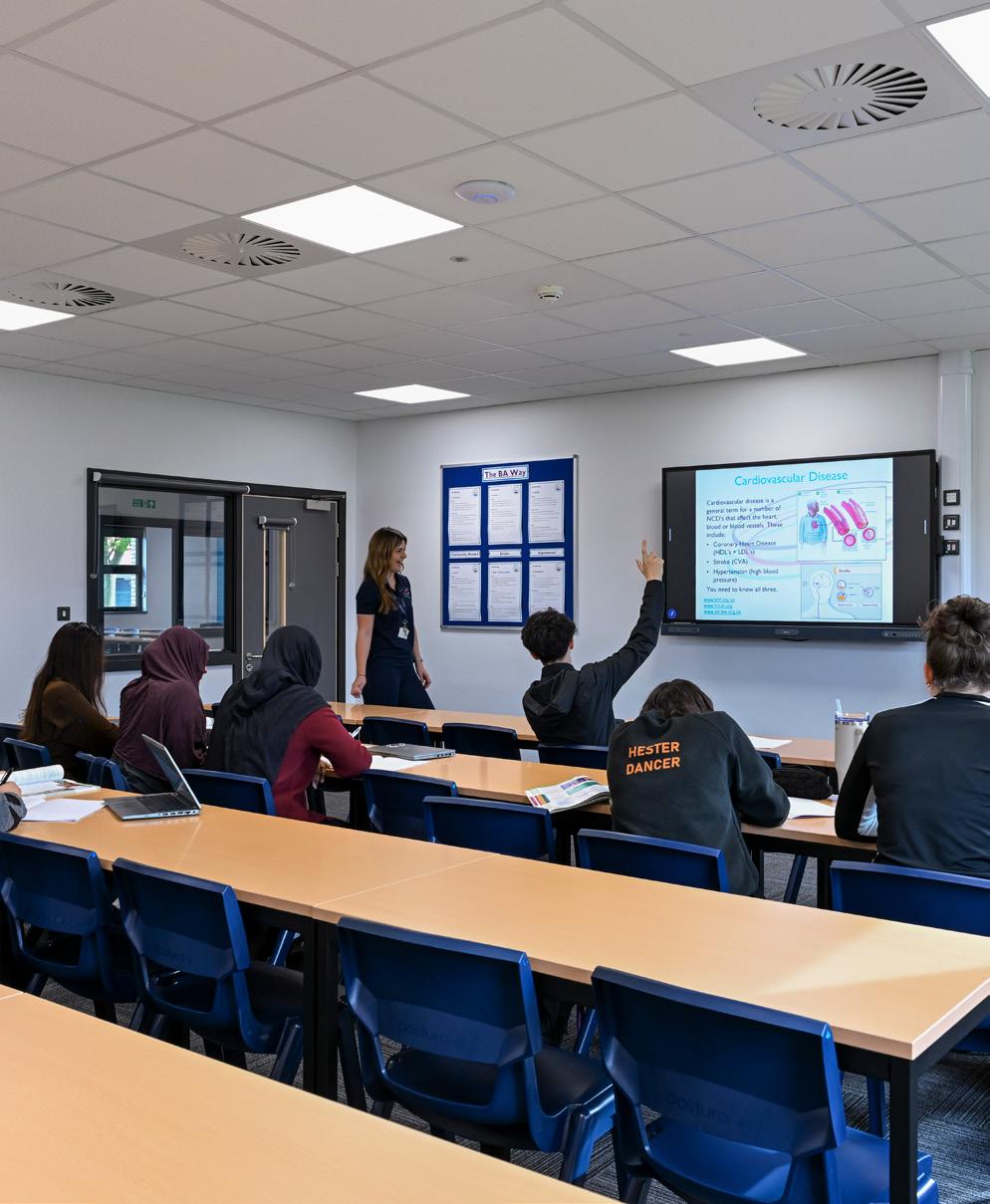 We designed the Bedford Academy extension to deliver 16 state-ofthe-art classrooms, changing rooms, a dining area, and a community café. Built to be highly efficient, it achieved Net Zero Carbon in Operation. The design included multi-use spaces, dual-access rooms, and a landscaped terrace, enabling both school and community use. Secure outdoor access further enhanced flexibility, establishing the extension as a sustainable and adaptable community hub.