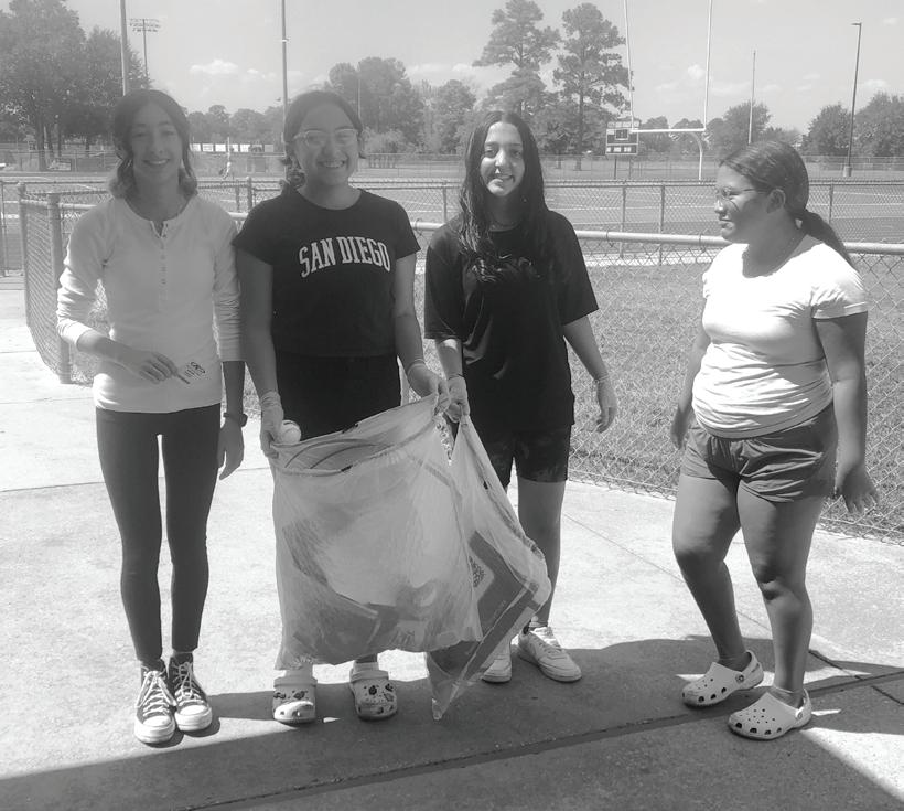 Troop 114149 pick up trash at their local high school for a Take Action Project.