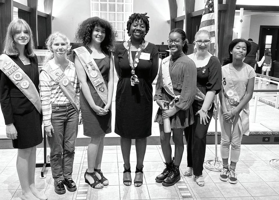 to Cadettes: Amari G., Reagan H., Aryana B., Nyla G., Anna J., and Nyla G.; bridged to Ambassadors: Katherine C. and Camille J.; bridged to Senior: Jasmine J. and Amari D.