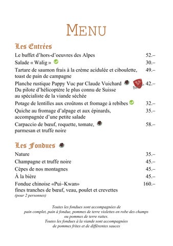 Quiche au fromage d’alpage et aux épinards, 35.–accompagnée d’une petite salade