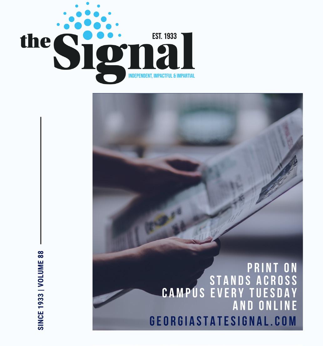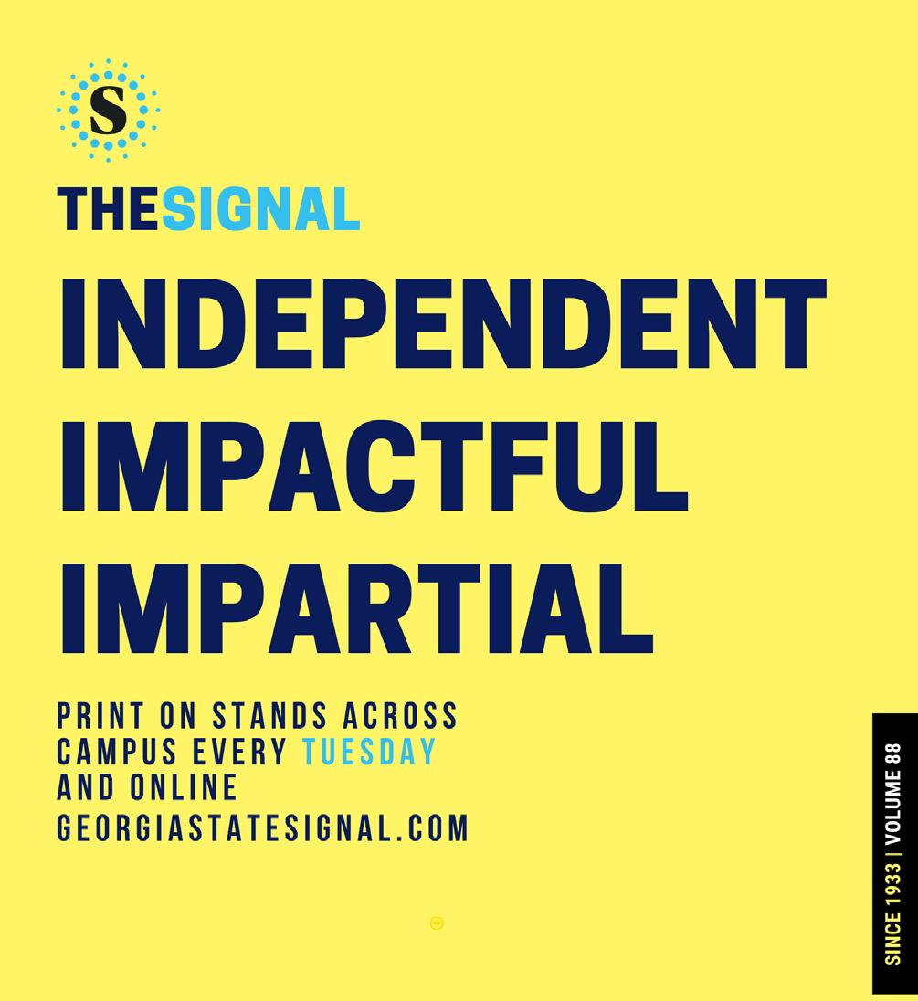 georgiastatesignal.com @gsusignal IN THIS ISSUE : In Opinions: The Election Commercials are Problematic Pg.4 In Sports: A reflection of Coach Elliot’s career at GSU Pg.6 VOL. 90 | NO. 02 10 / 04 / 22
