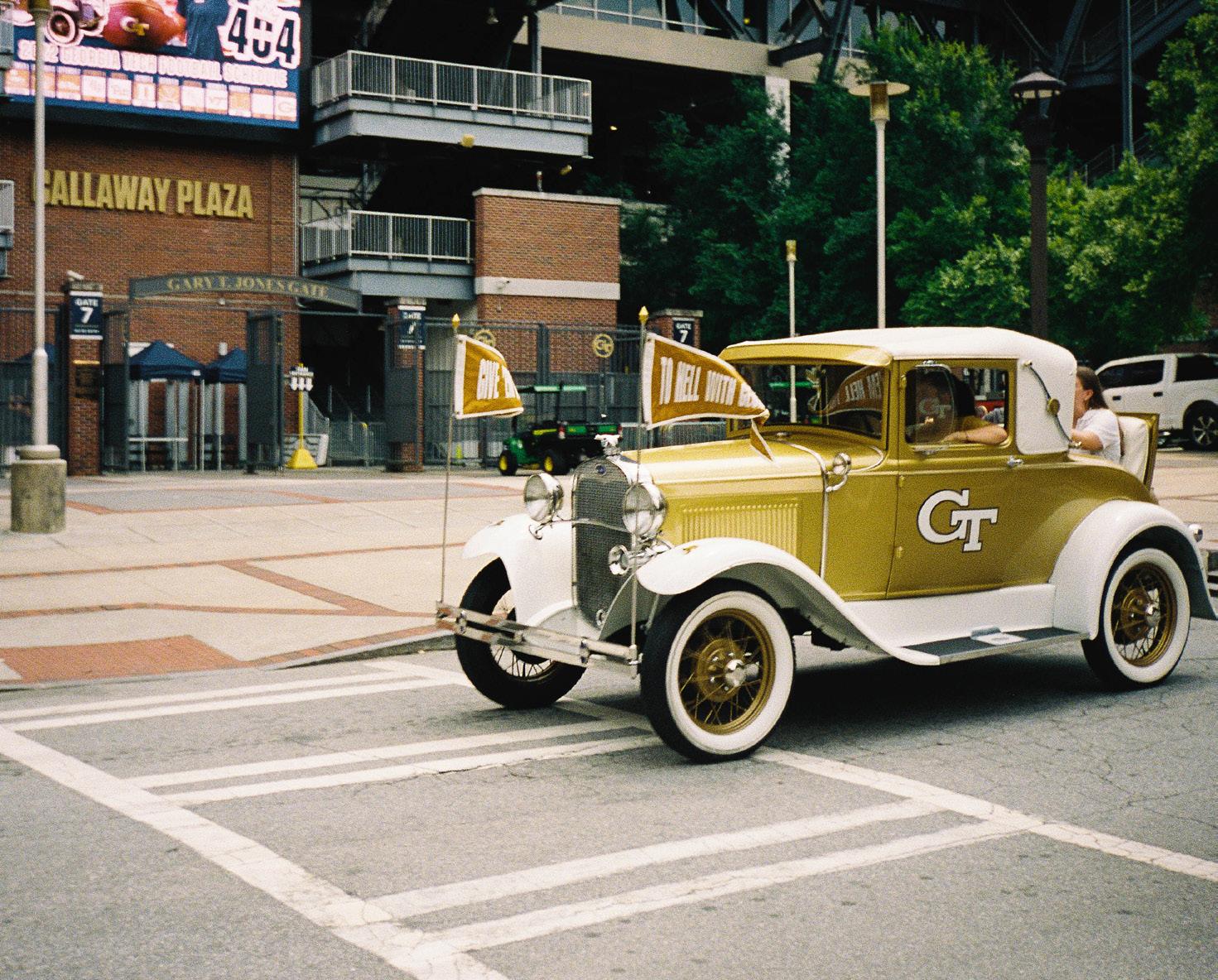 The Ramblin’ Reck is Georgia Tech’s one-of-a-kind mechanical mascot––a 1930 Ford Model A Sport Coupe. The very first Ramblin’ Reck was a 1914 Ford Model T, driven daily around campus by Dean of Men Floyd Field from 1916 until its demolition in 1929. Despite its dilapidated condition, the student body had come to adore Dean Field’s car as much as the man himself.