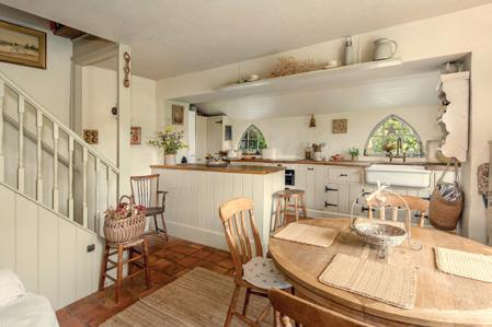 A simply charming four bedroom detached cottage set in a secluded edge-of-village position, presenting a picturesque countryside retreat. The accommodation is rich in character with extensive reception spaces and a lovely country style kitchen, while the mature garden of around 0.75 acres is bounded by a pretty chalk stream to one side. EPC Band F.