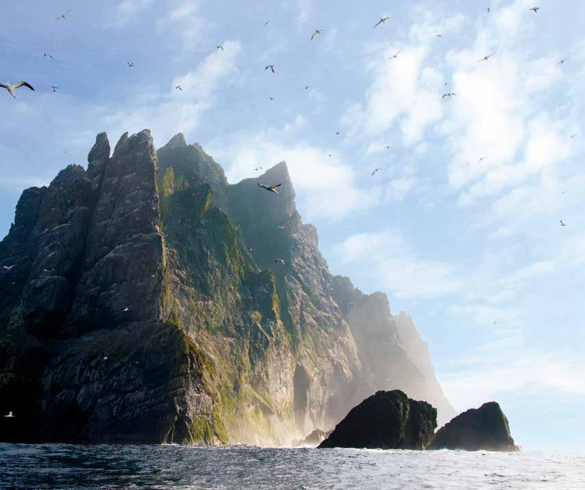 We’ll set sail from Glasgow, headed into Scotland's wildest corners. Think remote Inner Hebrides with puffin-packed cliffs and ancient historical sites, then onwards to legendary St Kilda, one of the UK's most isolated archipelagos. We'll witness the world's largest northern gannet colony, explore abandoned settlements, and discover dramatic sea stacks at every turn. Orkney and Shetland reveal Viking heritage and 5,000-yearold Skara Brae, while zodiac landings take us to tiny islands with populations you can count on your fingers (nearly). Expert guides, comfortable Expedition ship life, and fellow adventurers make this Scotland's ultimate wild escape.