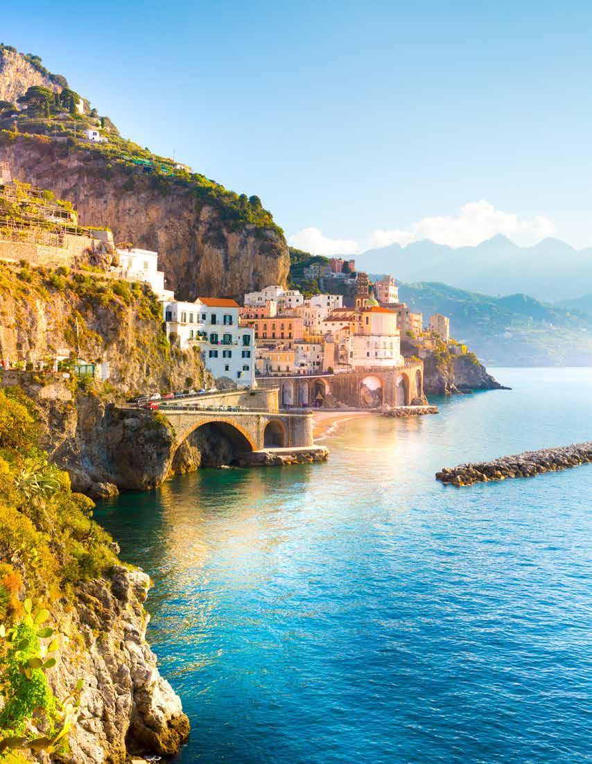 We’ll spend the day in Sorrento. In the company of your Holiday Director, enjoy the bustle of the main square, stroll through narrow lanes, dip into traditional trattorias and step inside intriguing ateliers. Limoncello is a popular drink here and we’ll visit a family-owned farm where it is produced to find out more. You’ll enjoy a tasting and learn about the processes used to create this traditional Italian liqueur. You could even join our optional cookery class followed by lunch for a chance to learn to cook typical recipes handed down for many generations. This evening we’ll enjoy a farewell get-together and dinner in the hotel. (B,D)