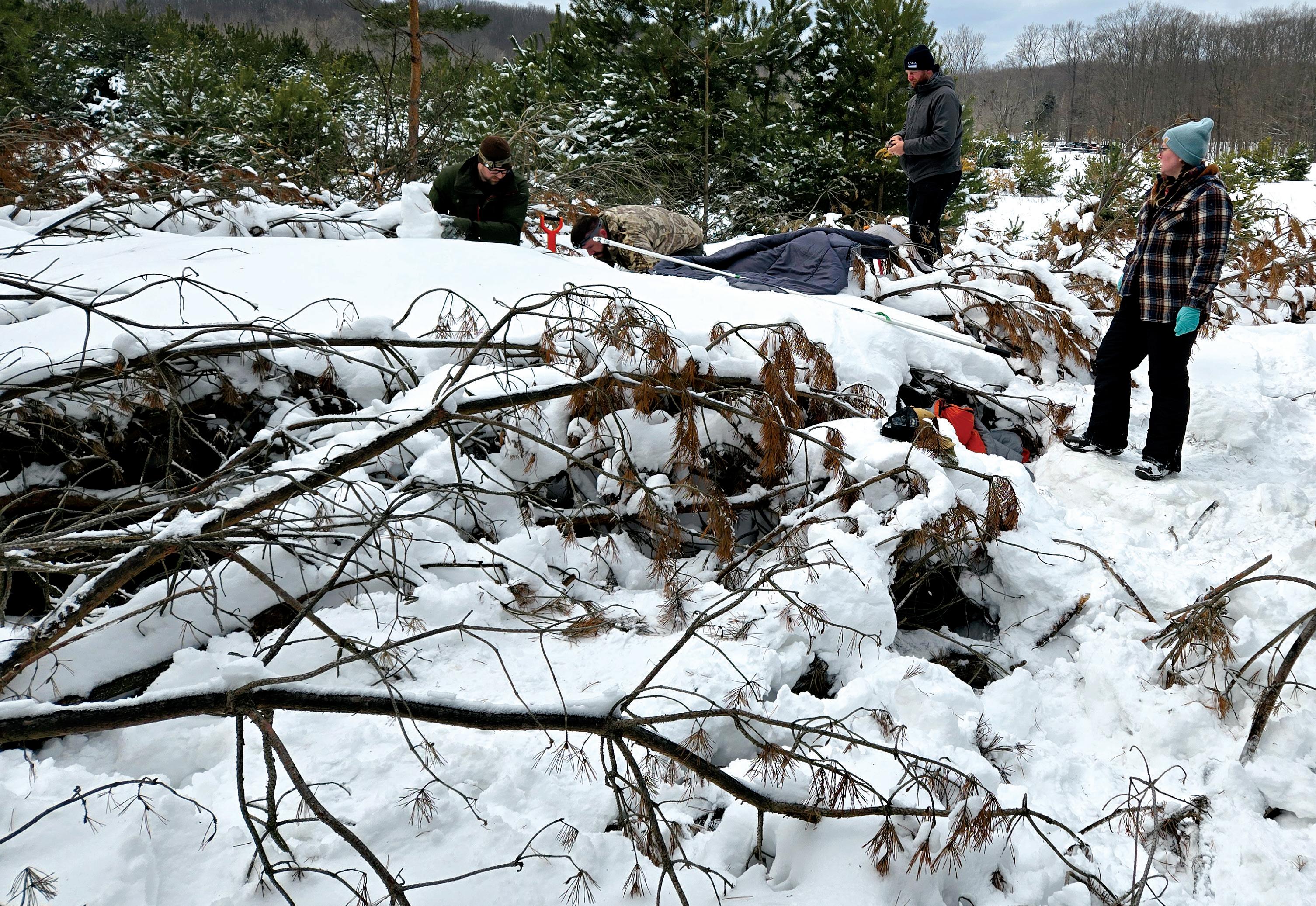 Left: Fischer and her research team located a black bear's den, made of invasive scotch pine removed by GTRLC staff, on protected land.