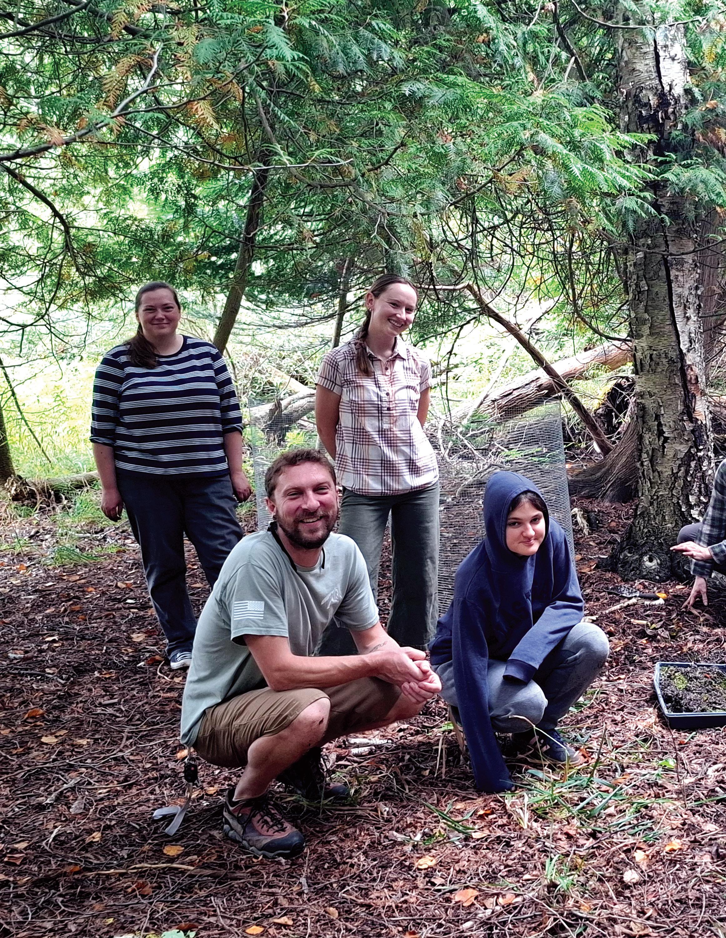 Dan and Lily from the Life Skills Center (pictured in the foreground) with GTRLC staff outplanting native orchids grown in the native plant greenhouse at Mitchell Creek Meadows: The Don and Jerry Oleson Nature Preserve.