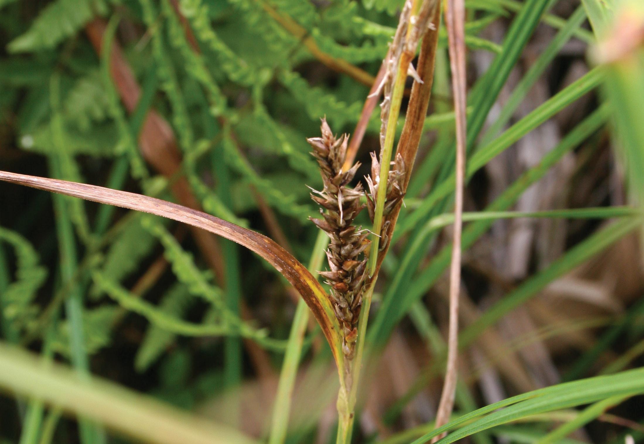 Also known as woolly-fruited sedge, this plant prefers wetter sites and can even grow in shallow water. It has a ladder-like cross-section and a rhizome system that can create floating mats, which are common in sphagnum areas.