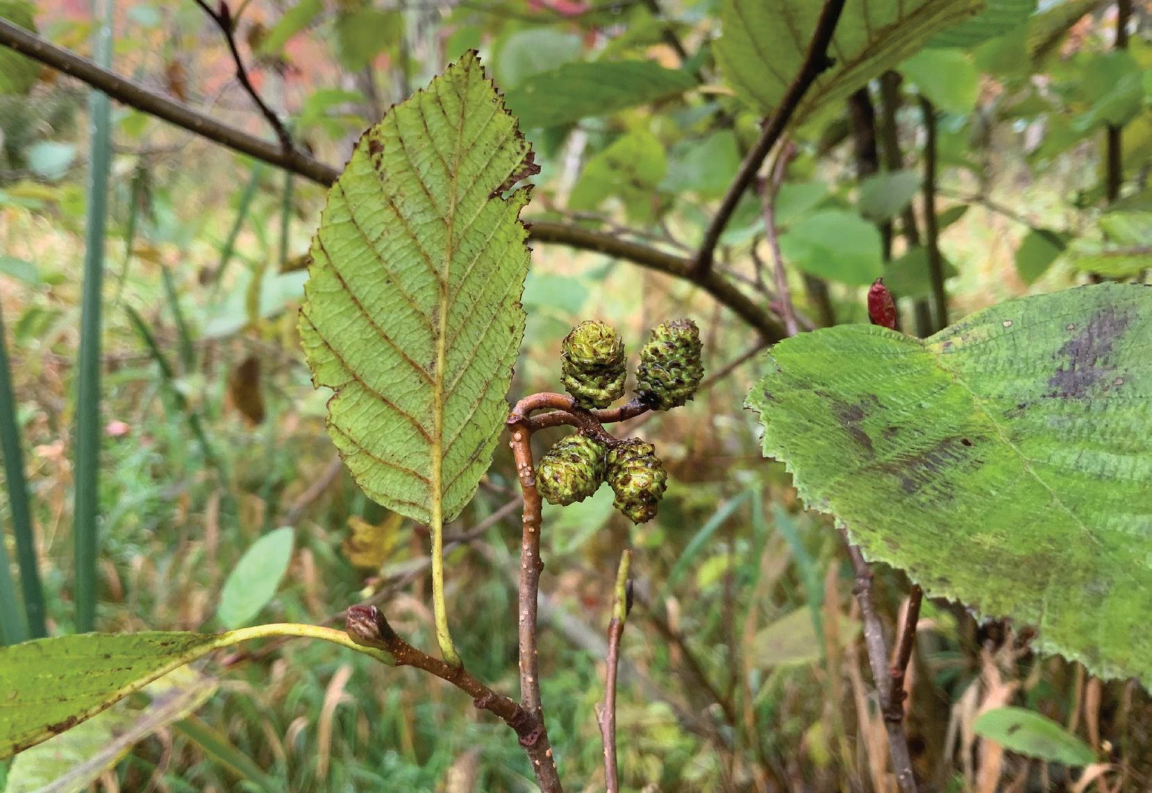 This tall deciduous, native shrub stands 10-20 feet high and has alternating leaves that are doubly serrated or “toothed” along the margins. With sprawling branches and multiple trunks, this shrub creates thickets that provide valuable habitat for many plants and animals but can make traversing wetlands challenging.